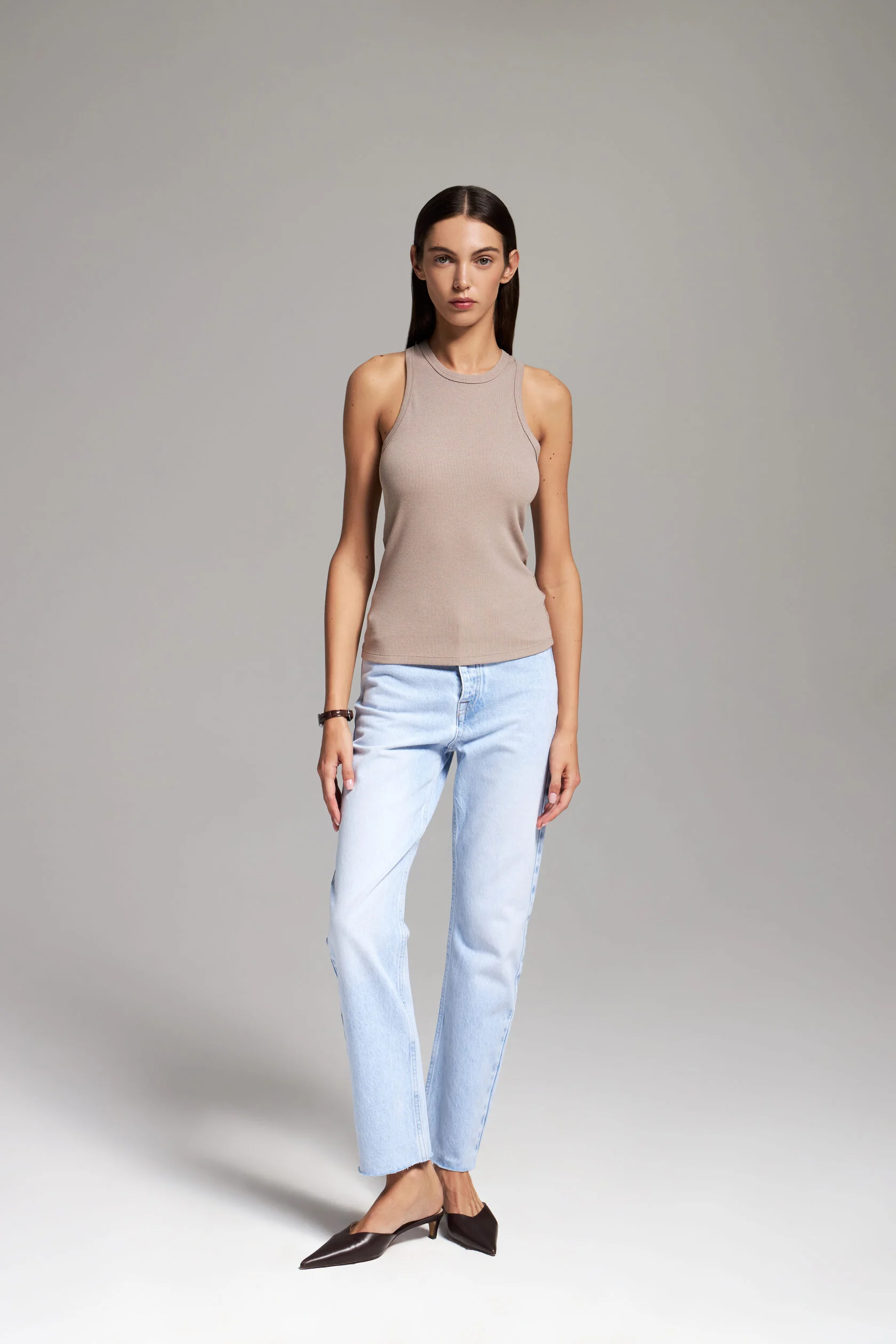 Универсальная длина, классический вырез горловины, широкие бретели. Эту базовую модель можно носить и в качестве первого слоя, и как самостоятельную вещь. Комбинируйте с жакетами, рубашками в клетку, или сочетайте с худи и свитерами на молнии.