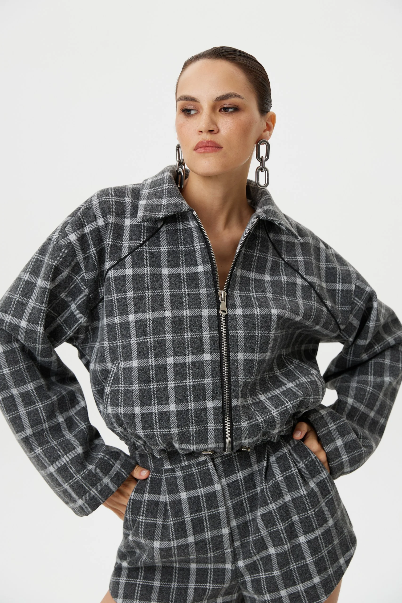 Oversize силуэт c мягкой линией плеча, которая не делает силуэт прямоугольным, а придает этому бомберу небрежный шарм и делает его универсальным для использования в разных ситуациях.