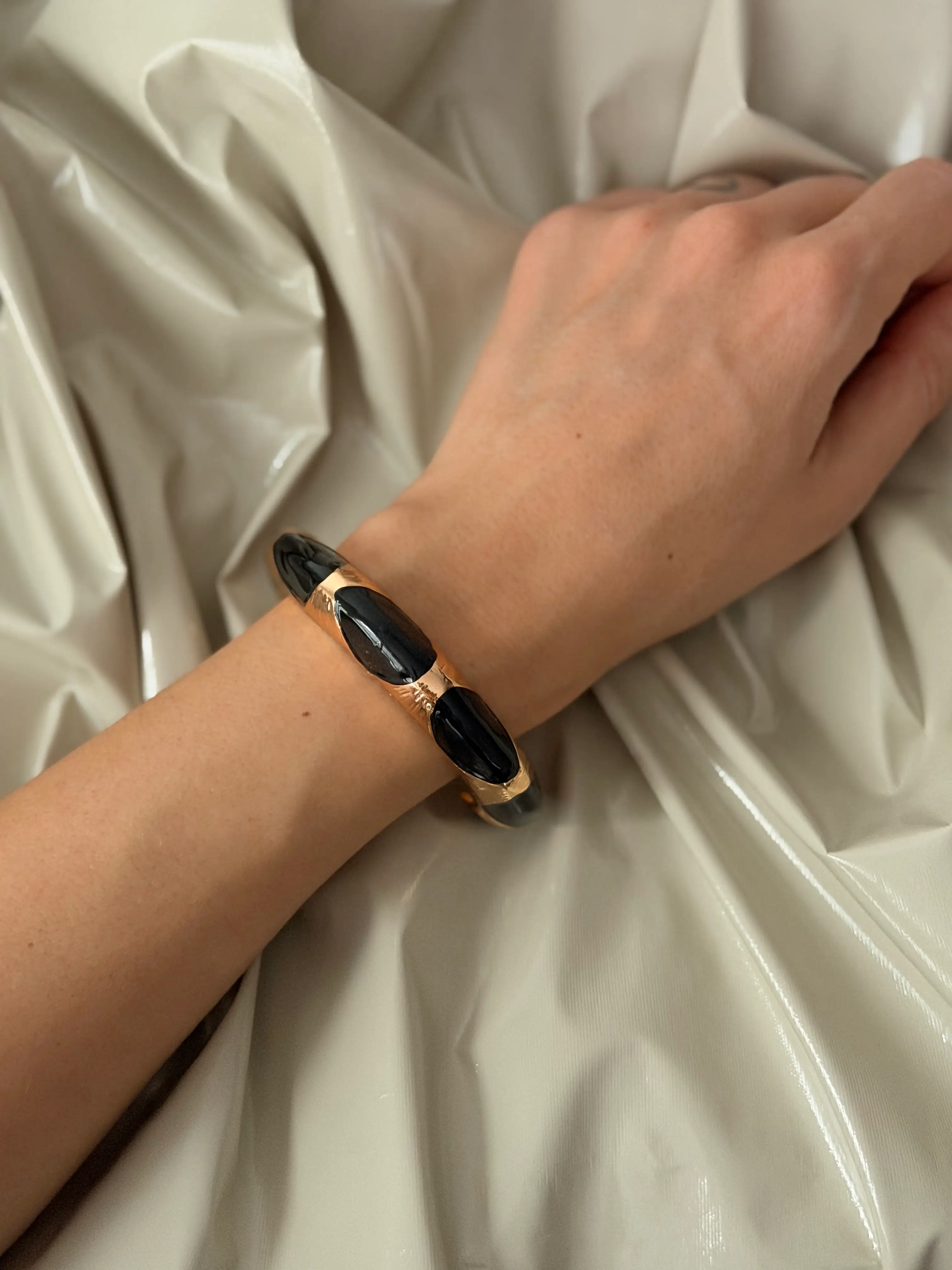Новый браслет от бренда NAYA – стильный аксессуар по доступной цене! Изготовлен из высококачественного пластика и бижутерного сплава металла в элегантном черном цвете. Компактная ширина делает его универсальным дополнением к любому образу: продукт станет вашим незаменимым спутником как в повседневной жизни, так и в особых случаях. Простота ухода позволяет надолго сохранить первоначальный вид изделия.