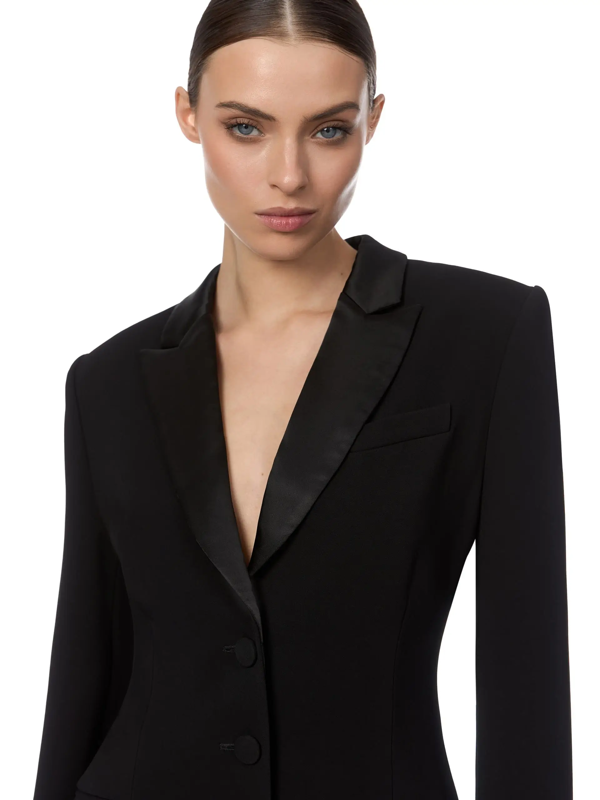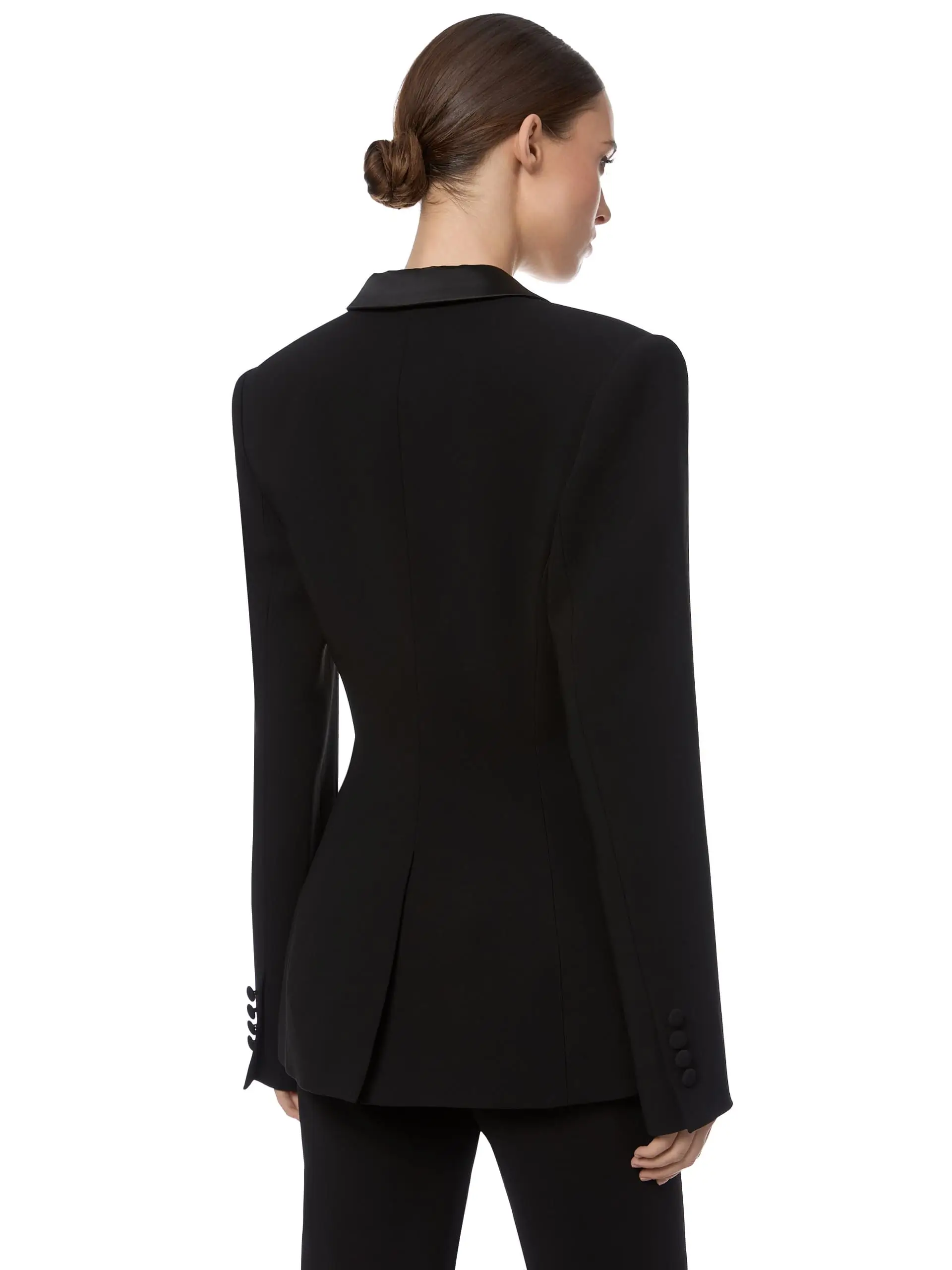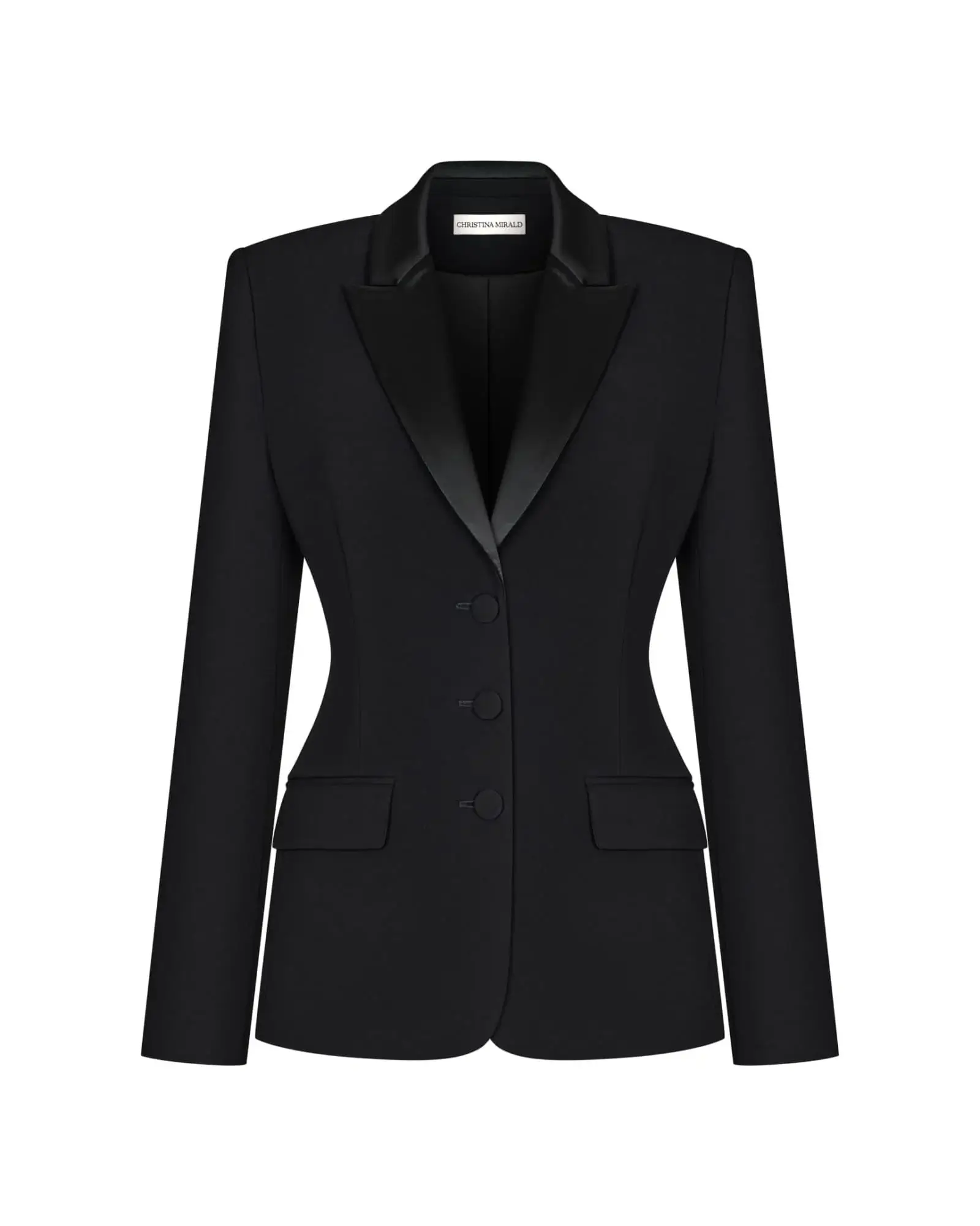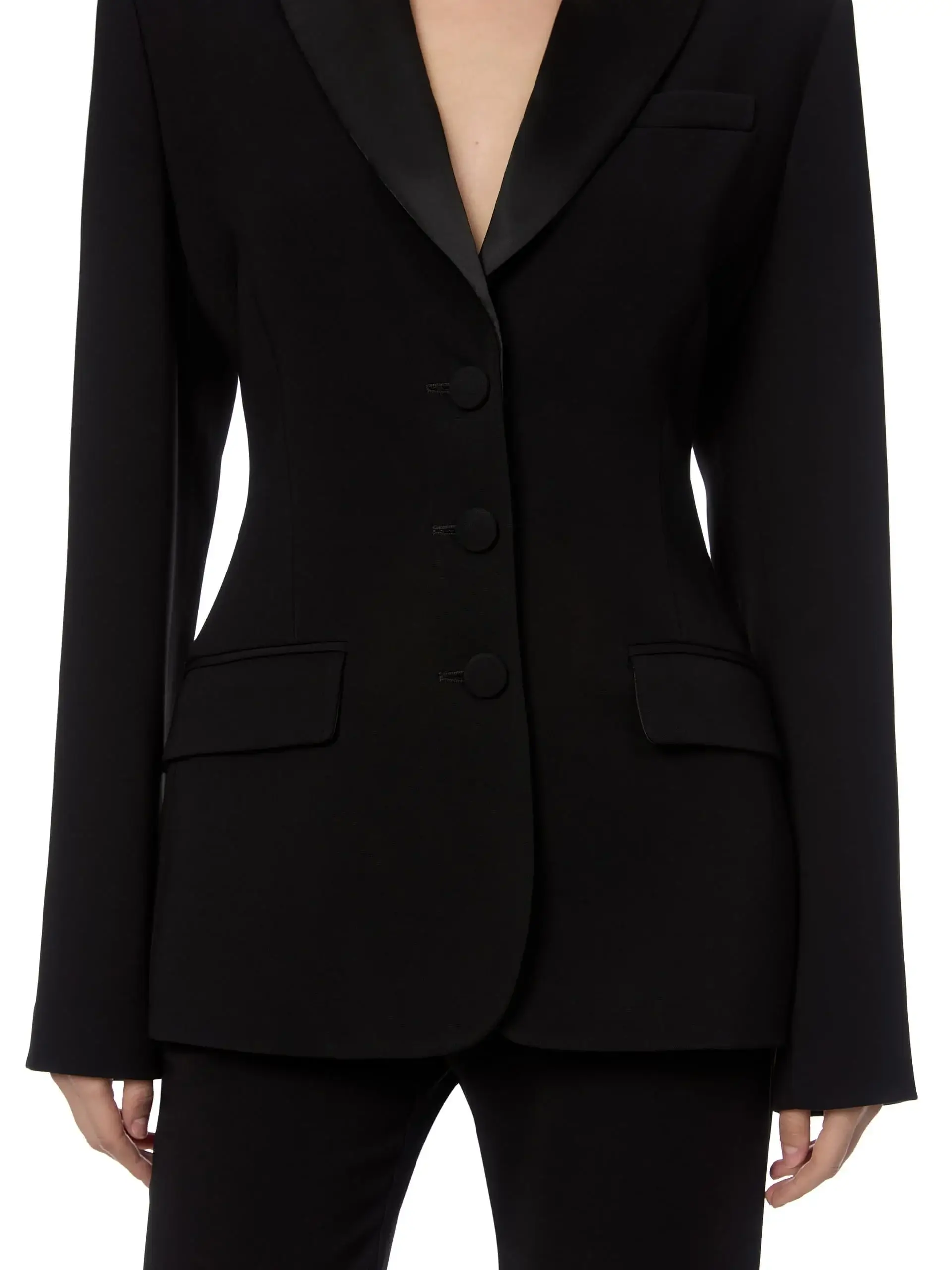 Классический однобортный жакет из вискозы с лацканами из натурального шелка.