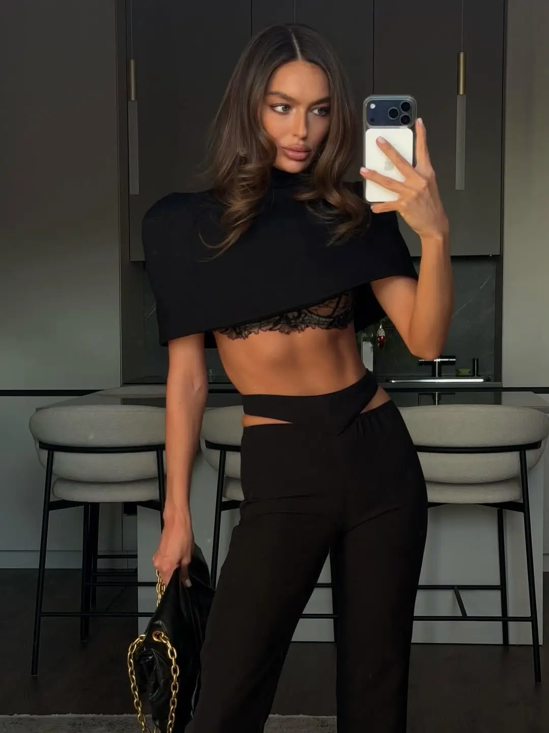 Кейп черного цвета — универсальная вещь в гардеробе, которая моментально добавляет образу статусности. Подходит к платьям, костюмам и даже джинсам.