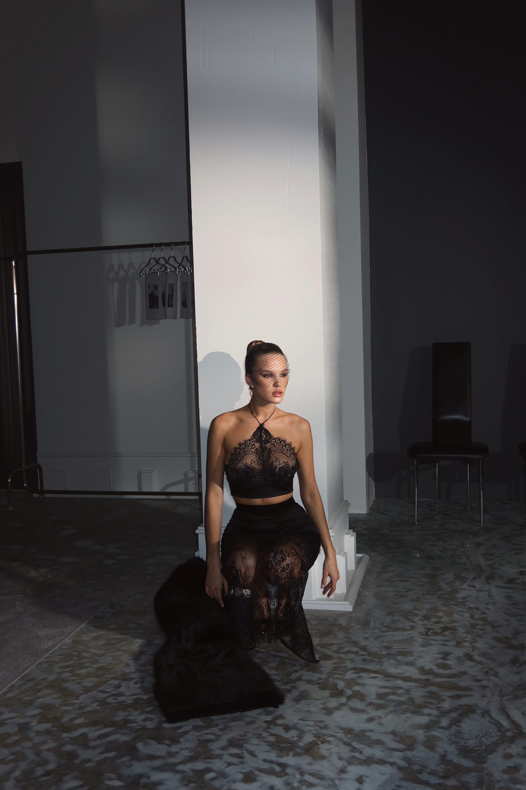 Комплект топ+юбка из японского шёлка и кружева шантильи.