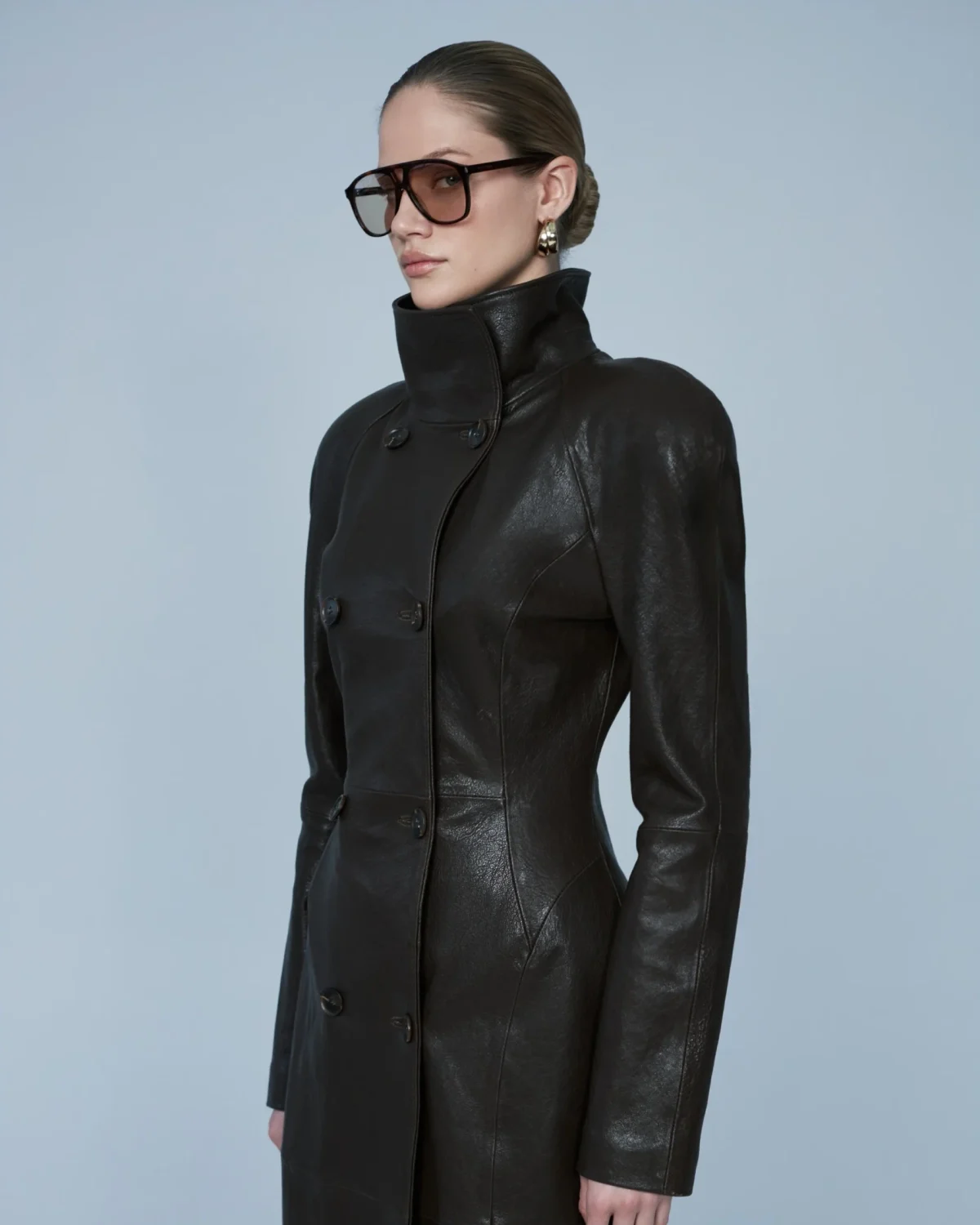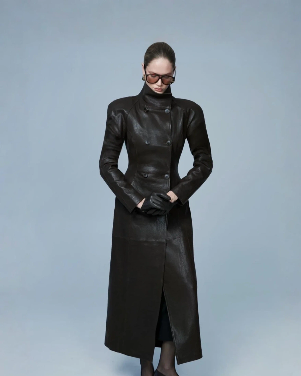 Кожаный тренч, Темно-Коричневый