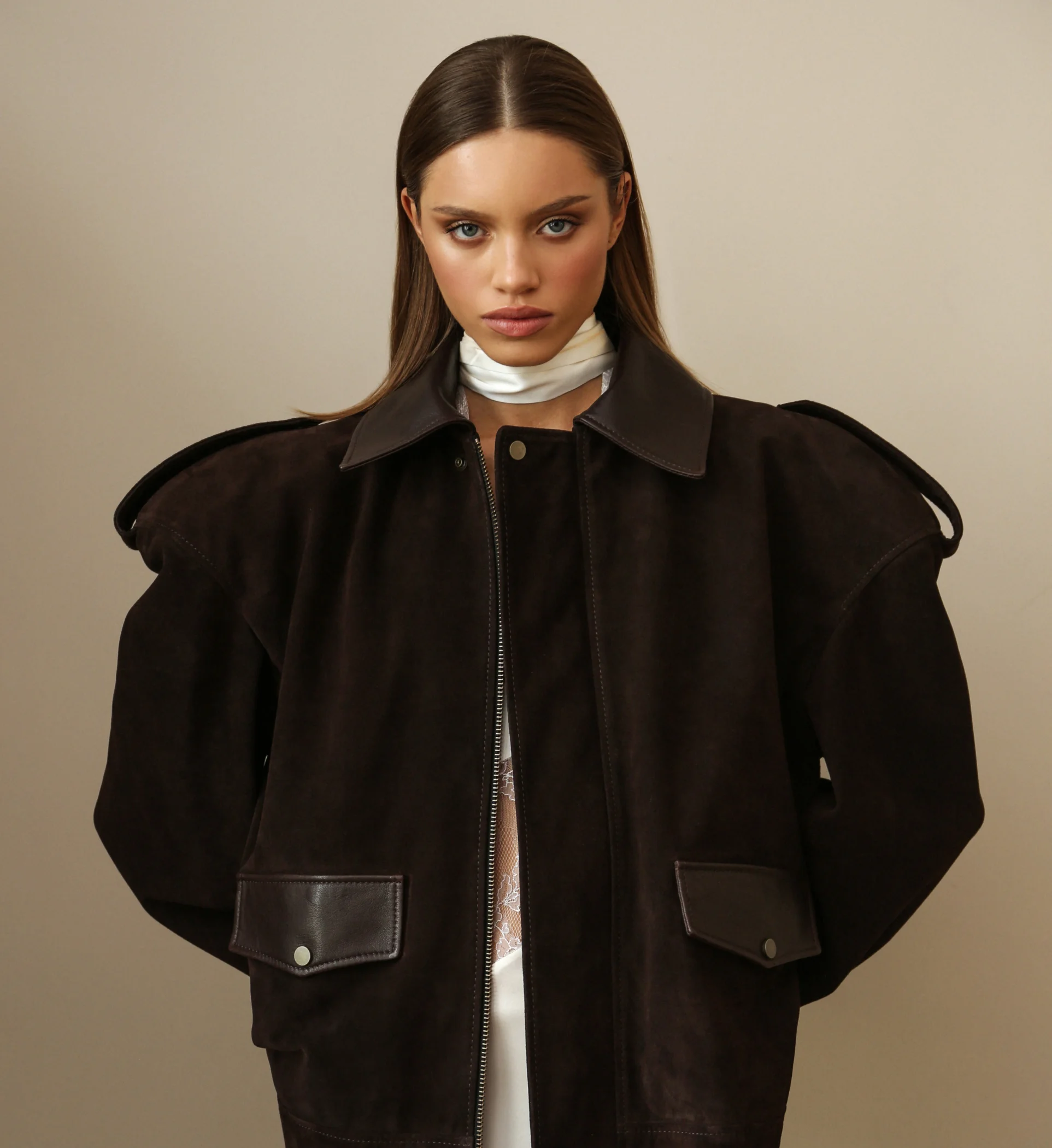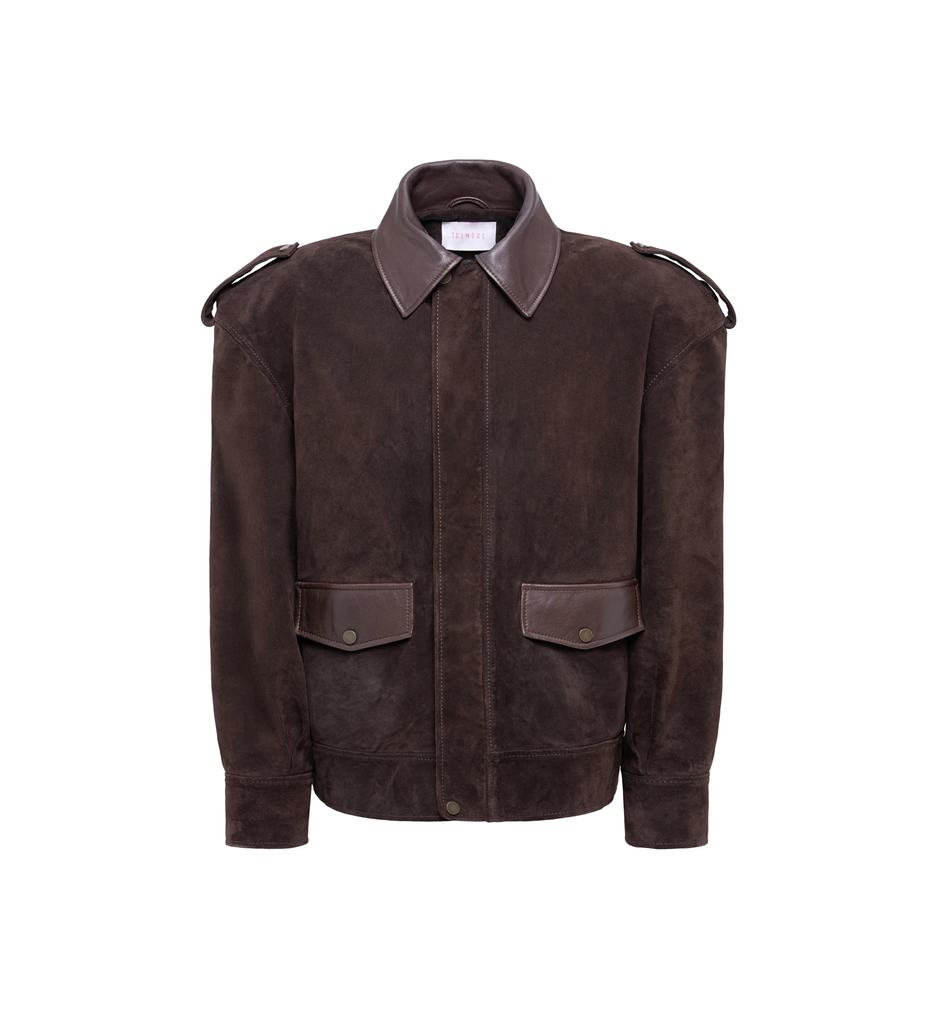 Куртка из натуральной темно-коричневой замши BROWN SUEDE - исключительная вещь для вашего гардероба. Расширенные плечи, прямой крой и бархатистая фактура создают оптимальный комфорт и уникальный стиль. Воротник и карманы из гладкой кожи раскрывают неоспоримую оригинальность характера TRIMPOL.