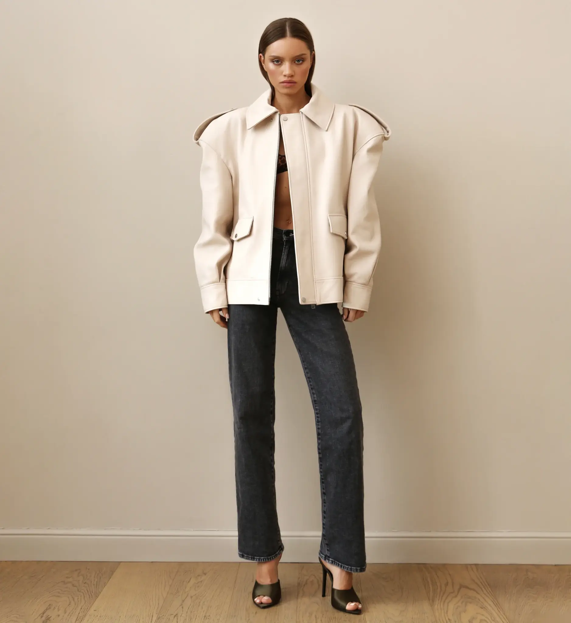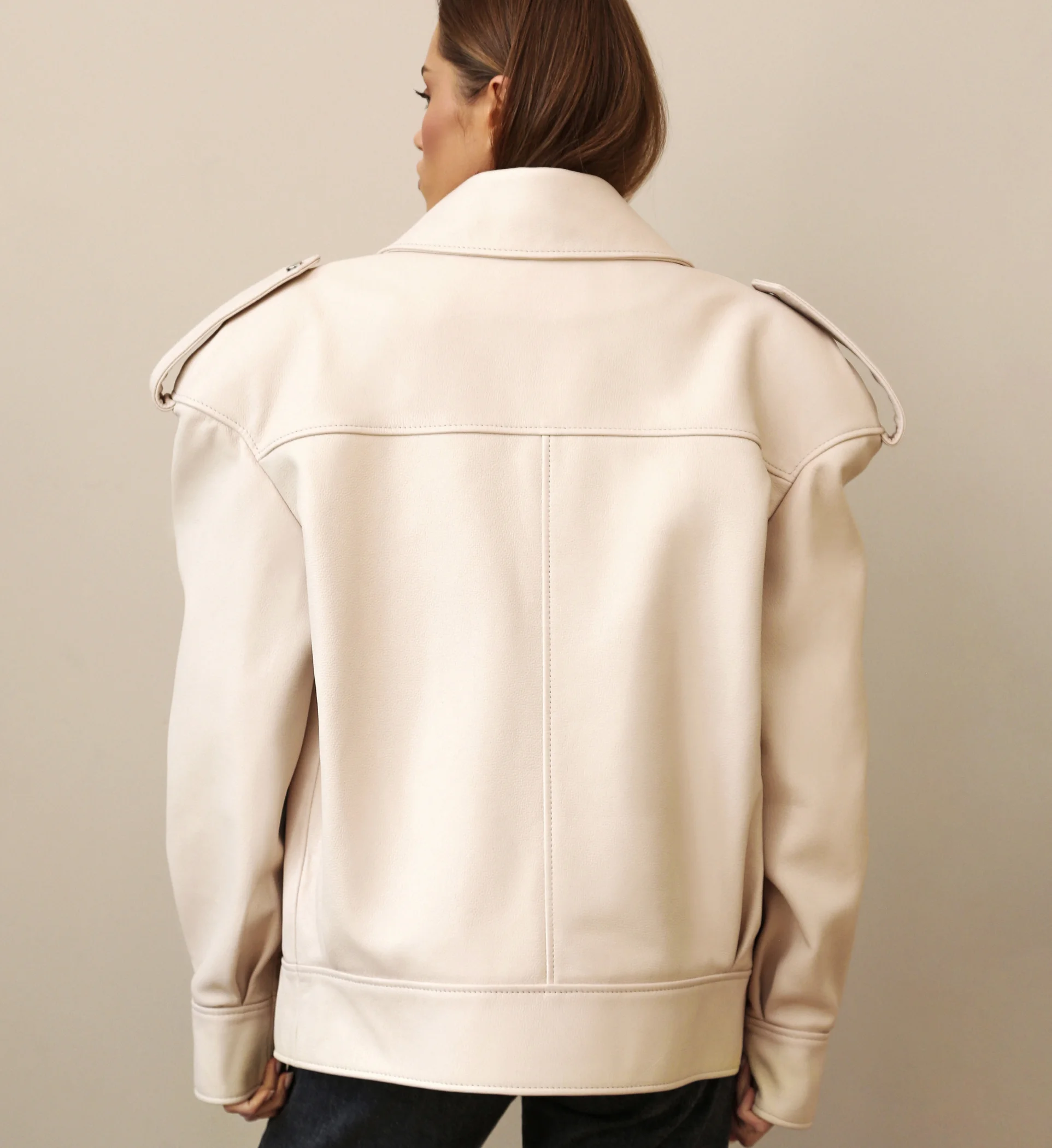 Кожаная куртка в молочном цвете TRIMPOL выполнена из натуральной кожи. Зернистая фактура, V-силуэт, четкие линии позволяют вписать куртку в любой гардероб, а благородный оттенок освежает и гармонирует практически с любыми аутфитами.