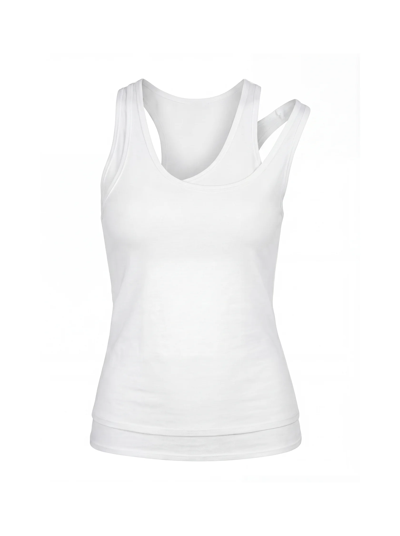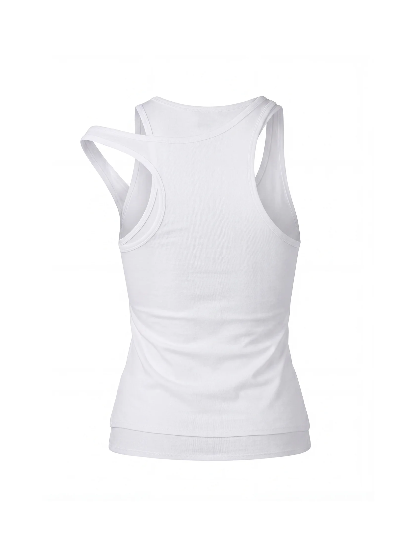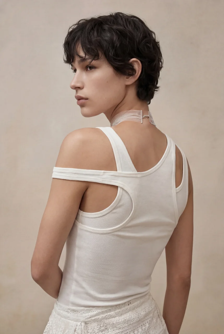 Облегающий силуэт, натуральный материал, замысловатая асимметрия, чистый белый цвет - делают эту майку универсальной. База на каждый день, но при этом выразительная.