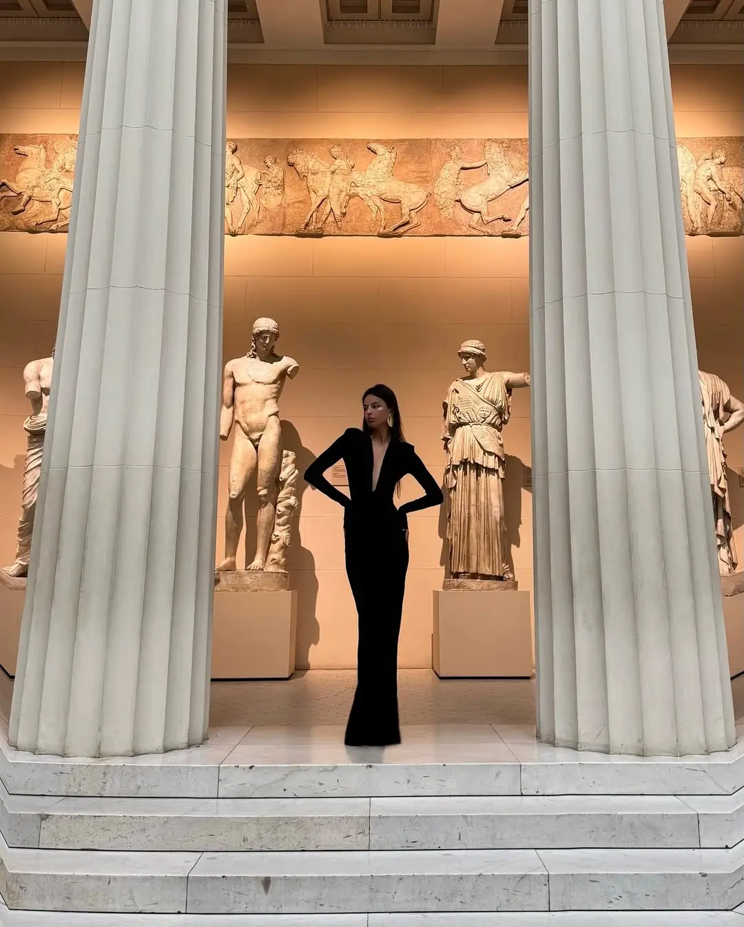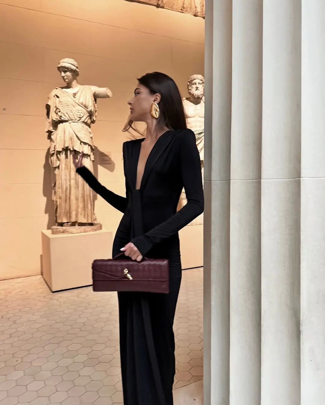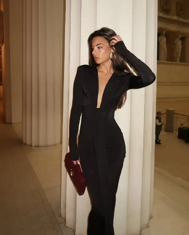 Платье Bilberry — идеальный вариант для особых случаев и торжественных мероприятий. Глубокое декольте, мягкие драпировки и приталенный силуэт формируют образ с ноткой ретро-романтики. Длинный рукав и фактурная ткань подчеркивают утончённость и изысканность, а удобная посадка обеспечивает комфорт на протяжении всего вечера.