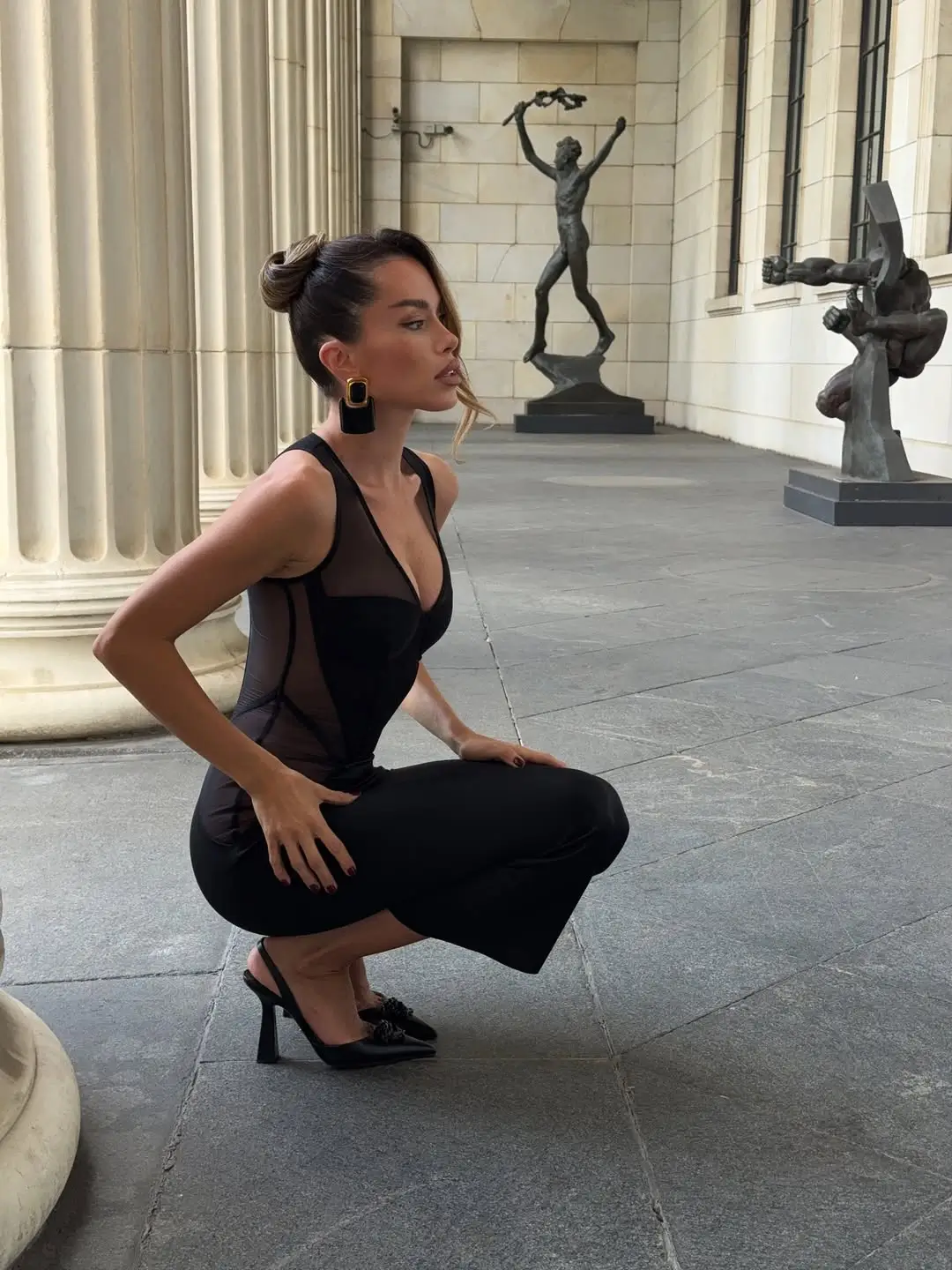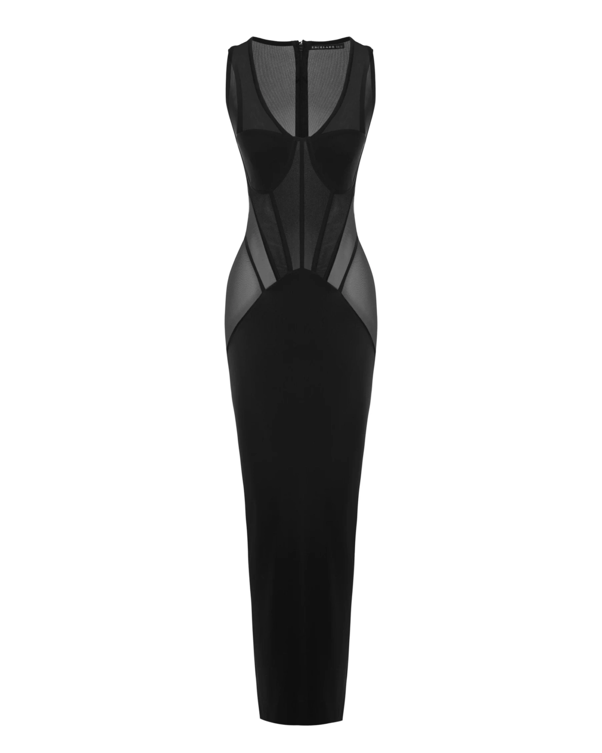 Платье корсетное Greta Black — воплощение смелой женственности и утончённой соблазнительности. Полупрозрачные вставки из сетки создают эффект невесомости и подчеркивают графичность силуэта, а корсетный верх формирует изящные линии фигуры. Облегающая юбка длины миди гармонично завершает образ, добавляя ему строгости и элегантности. Идеальный выбор для вечерних мероприятий, торжественных выходов или особых случаев, когда хочется подчеркнуть свою уверенность и харизму. Минимум аксессуаров и акцентная обувь сделают образ завершённым и эффектным.