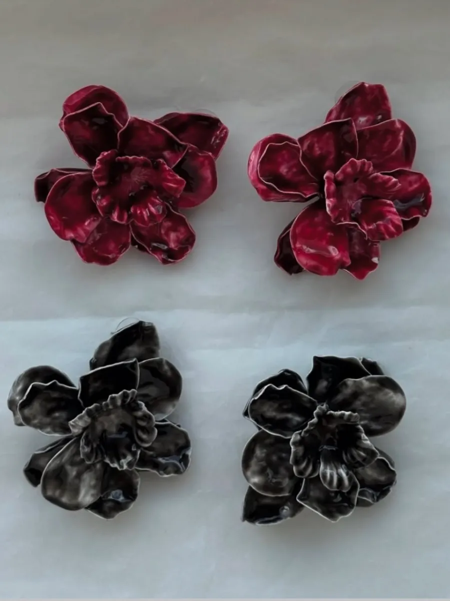 Серьги черные цветы