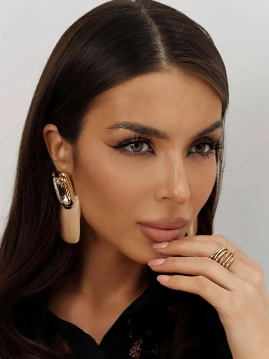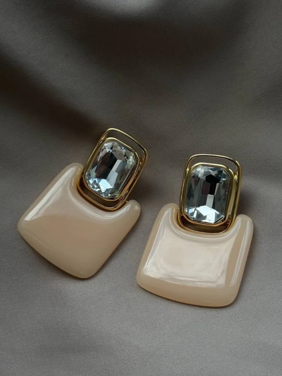 Серьги под золото с бежевым камнем