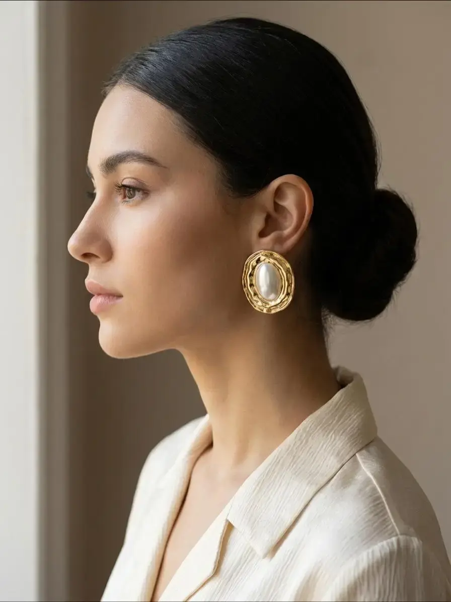 Изящные серьги под золото с жемчужным центром – элегантное украшение, созданное в России. Стильный дизайн подчеркивает индивидуальность и добавляет образу женственности. Гибкость гипоаллергенной фурнитуры обеспечивает комфорт при носке. Подходит к деловому костюму или вечернему платью, станет незаменимым аксессуаром как для повседневности, так и торжественных случаев.