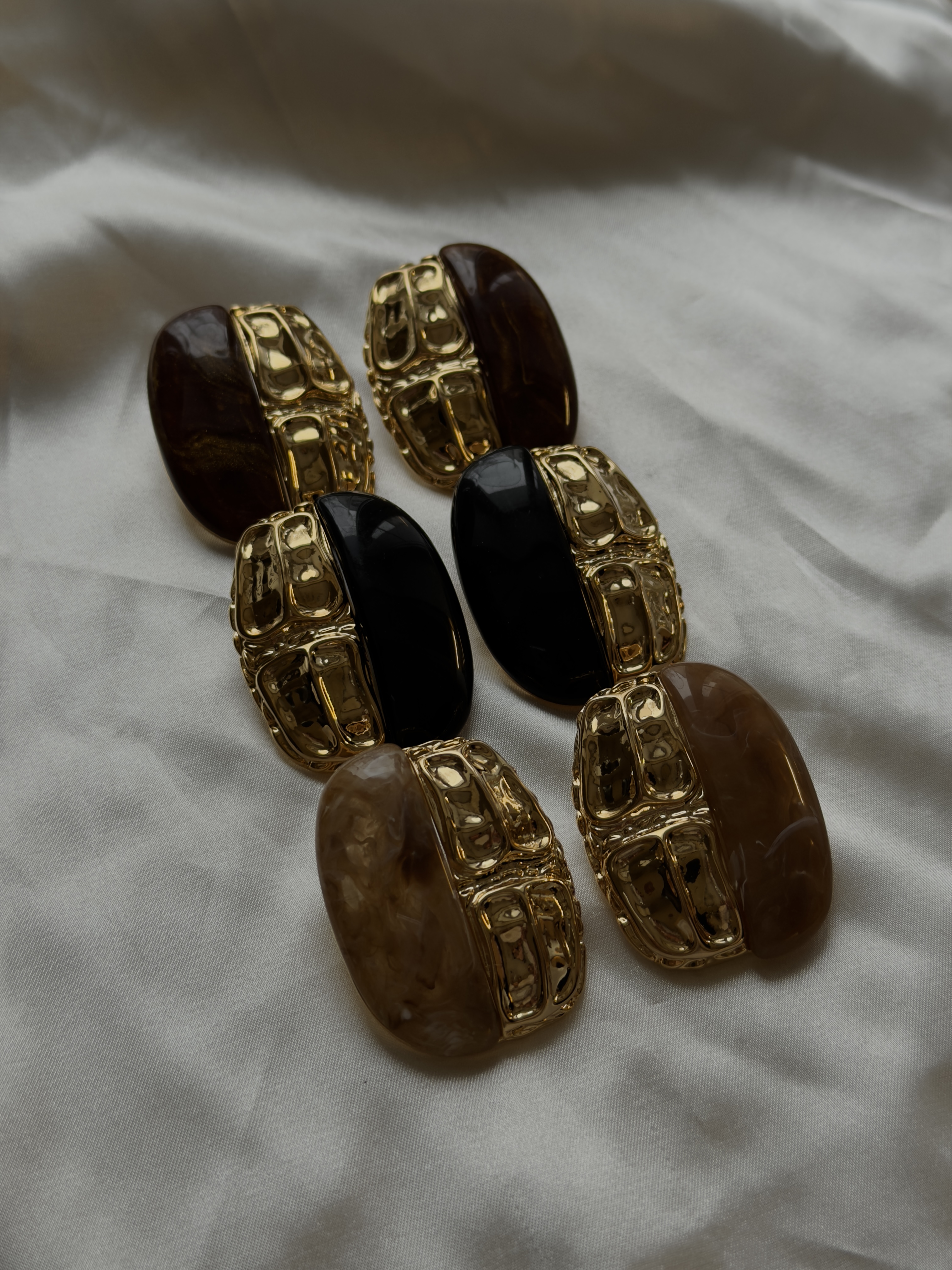 Серьги-половинки со светло-коричневым литьем, Золотой