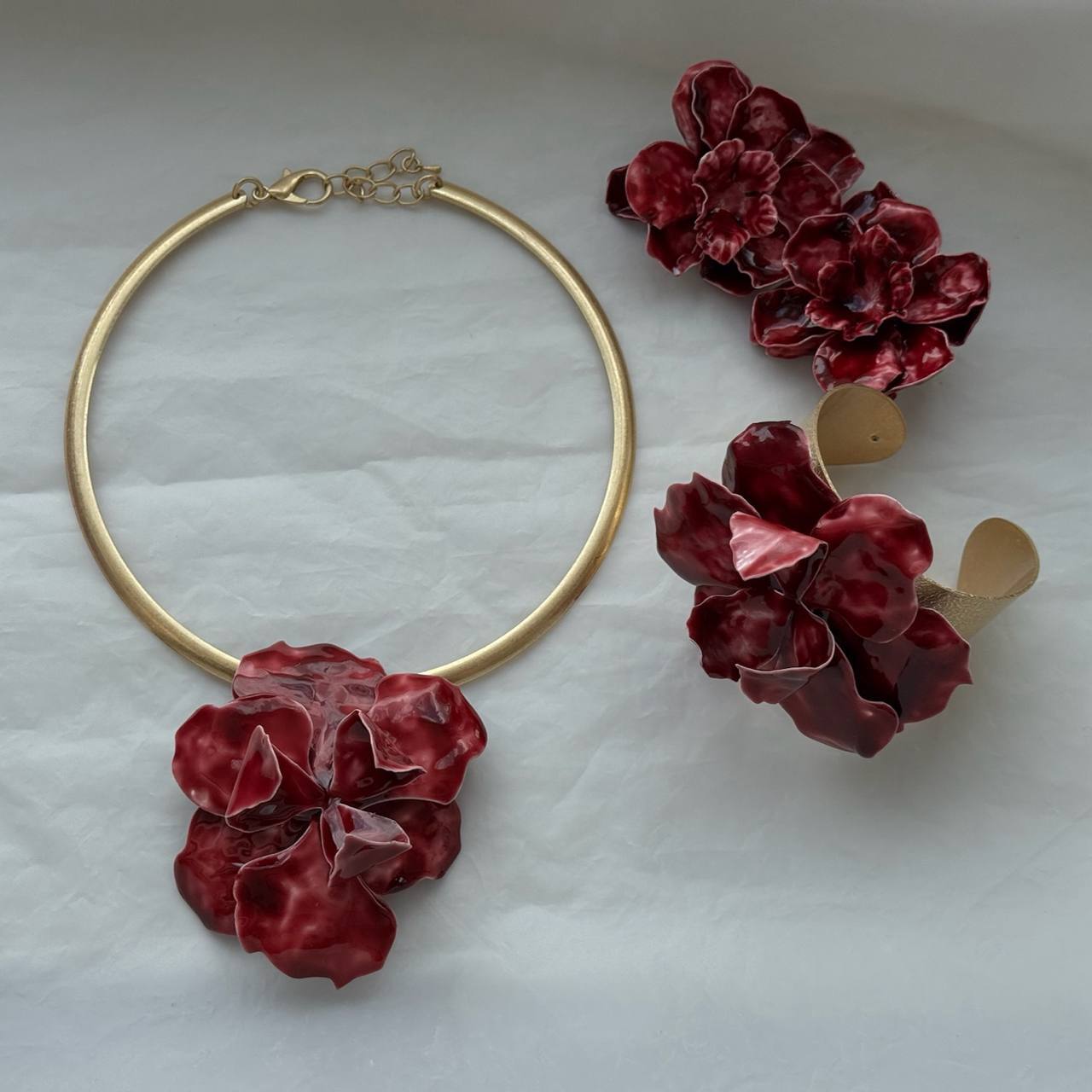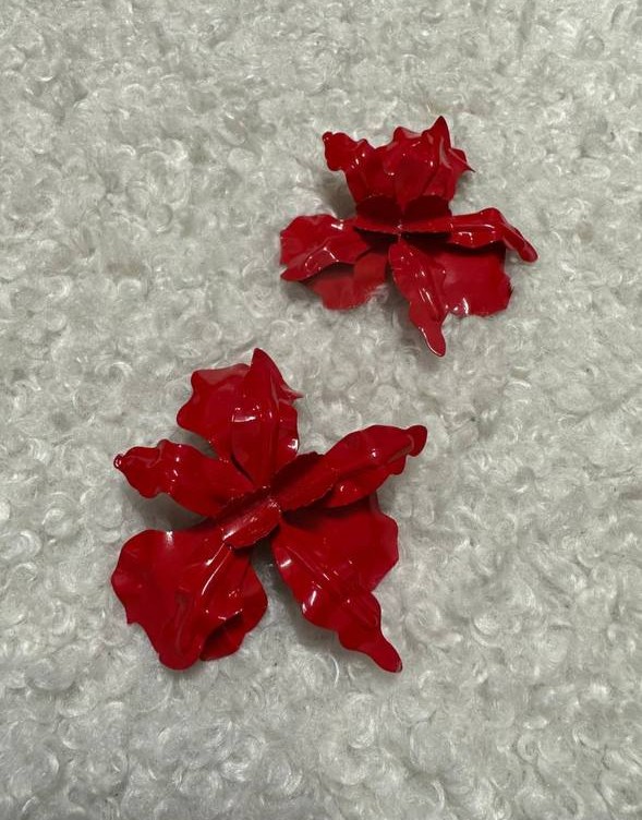 Серьги цветы красные