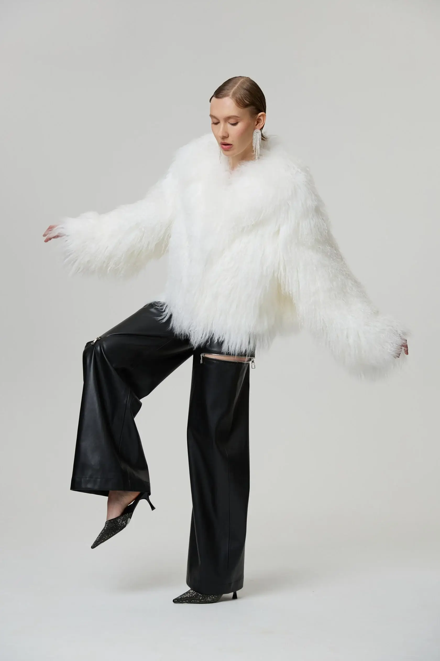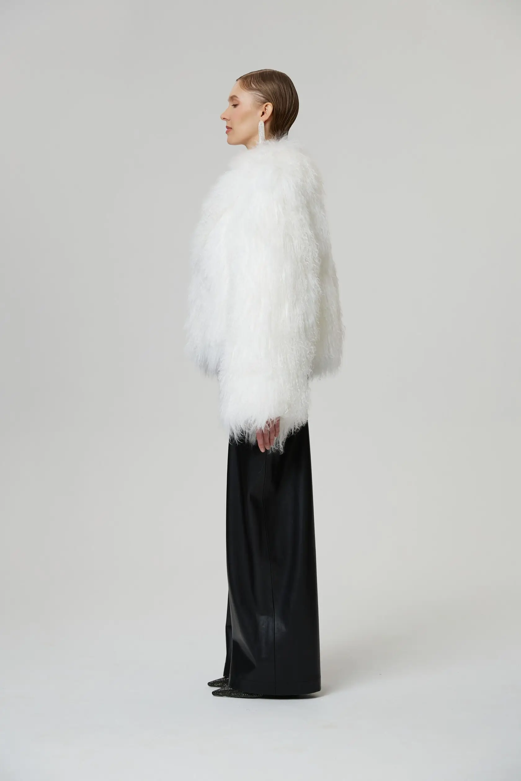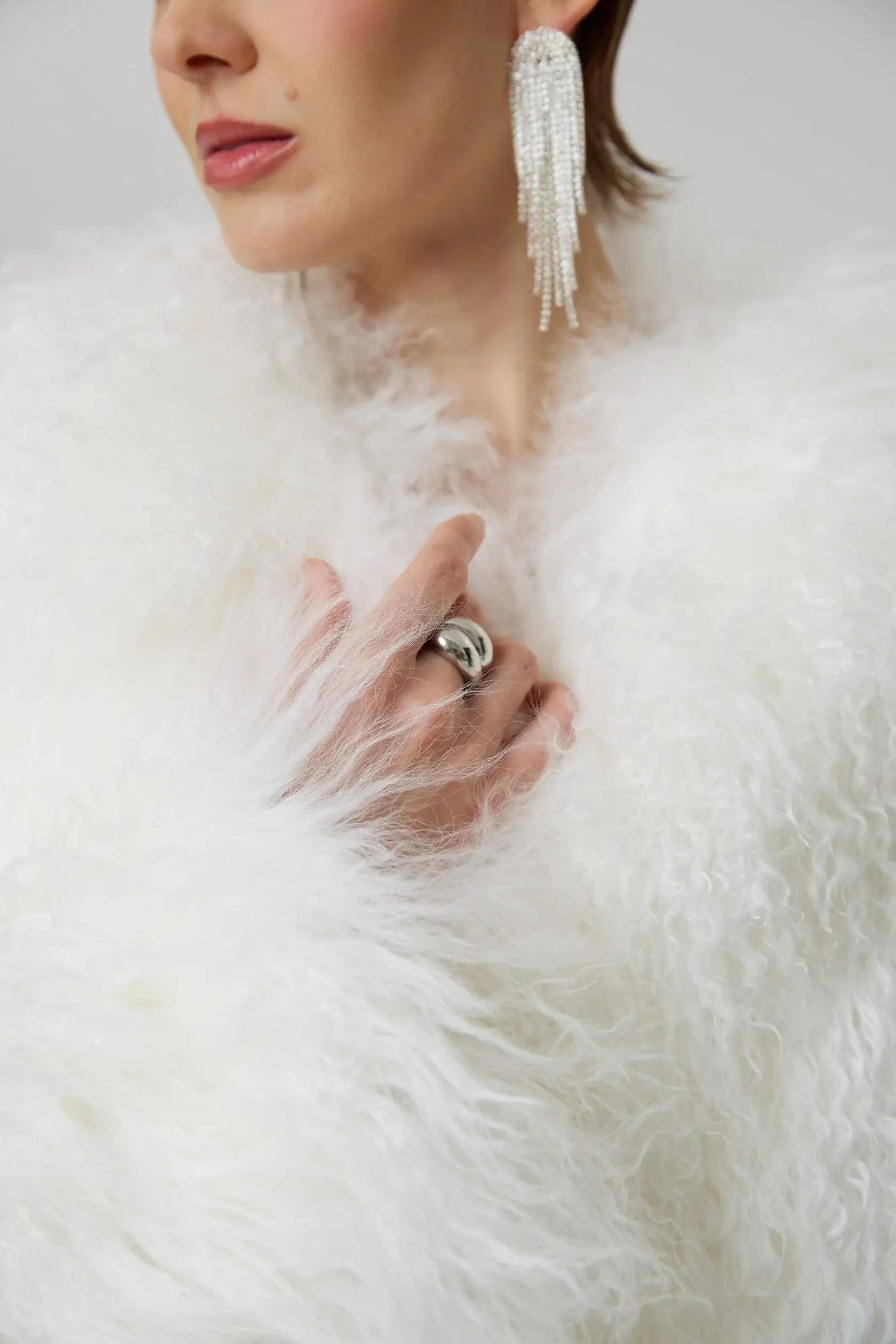 Шуба из натуральной ламы, которая при своей легкости и мягкости будет греть вас до -10 градусов. Лама не боится воды и является гипоалергенной.