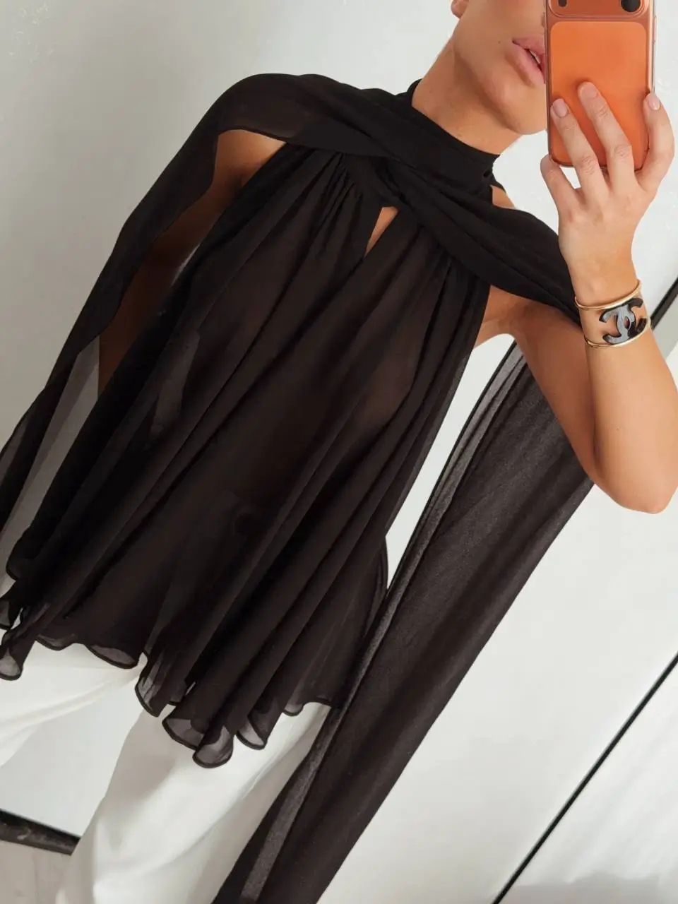 Топ из шифона, черный