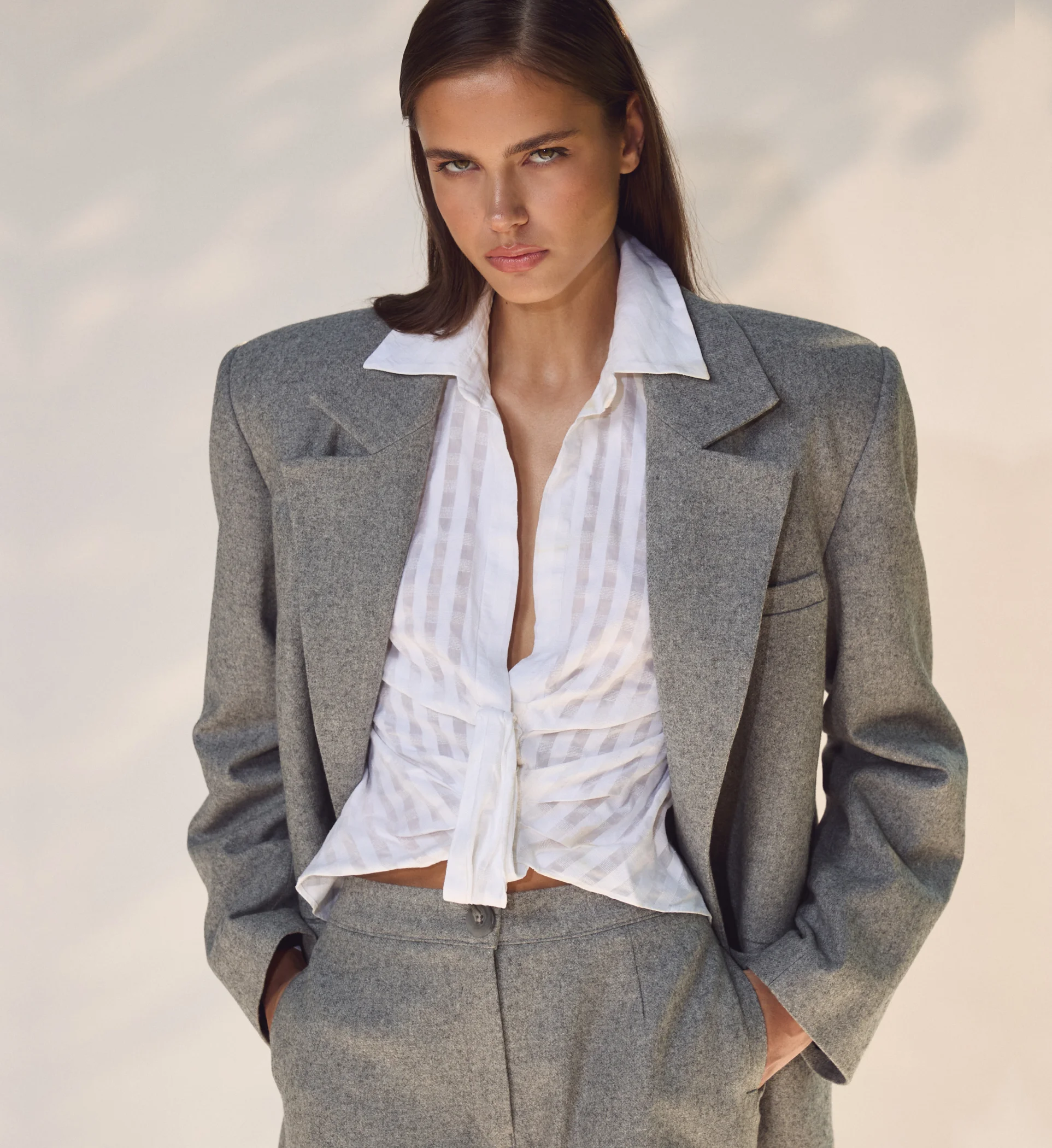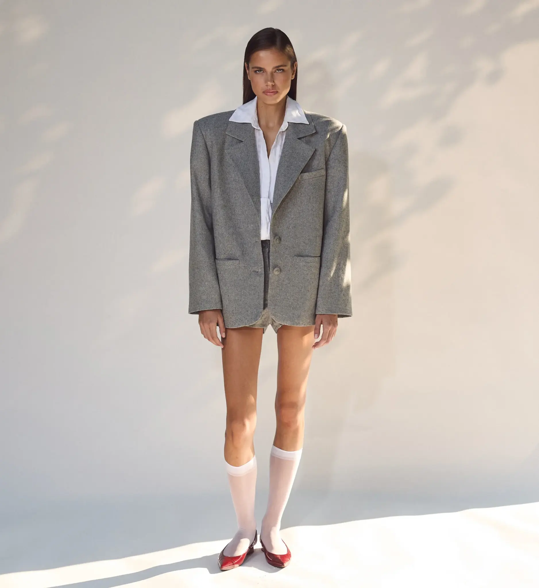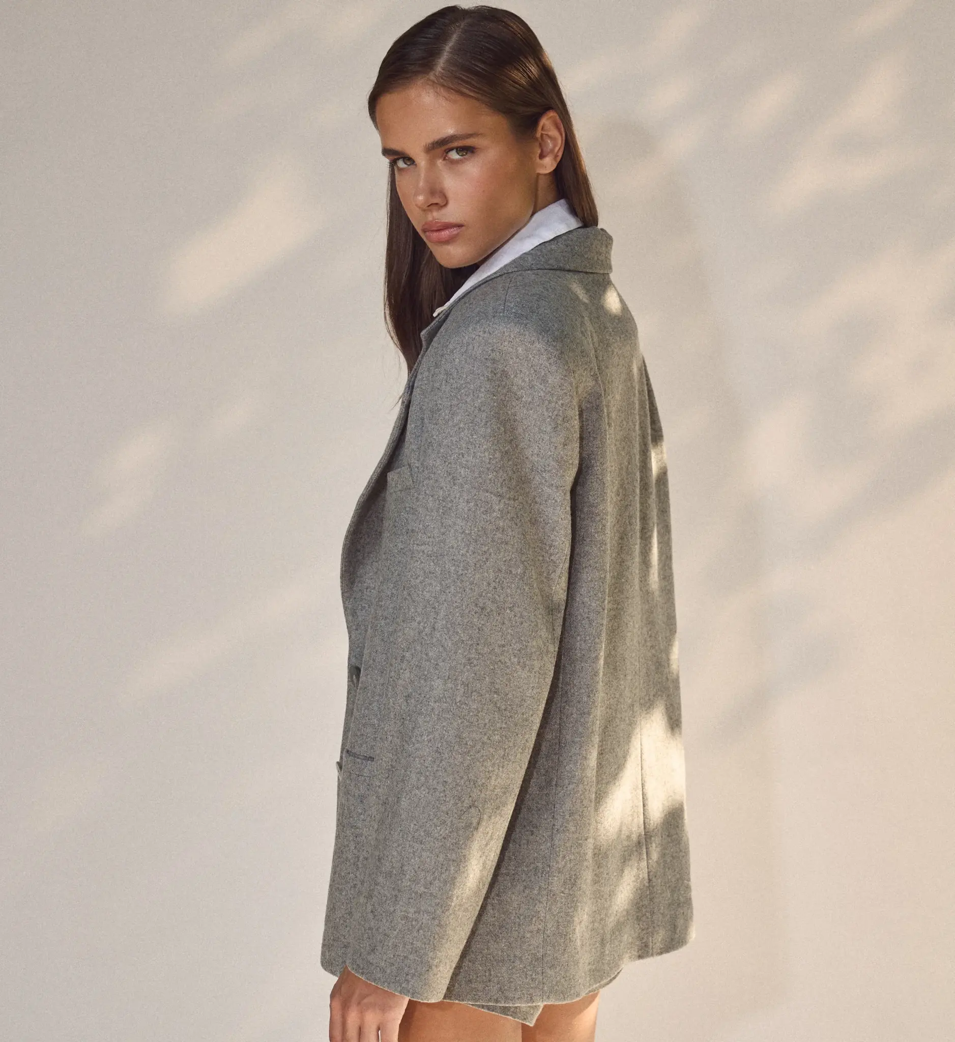 Жакет из шерсти в сером цвете — это воплощение элегантности и стиля. Фасон, вдохновленный строгими линиями мужской моды, акцентирует внимание на силуэте, подчеркивая индивидуальность. Легкий оверсайз создает актуальный образ как для делового стиля, так и для повседневной жизни. Жакет станет незаменимым элементом гардероба, придающим особую непринужденность в стилизации.